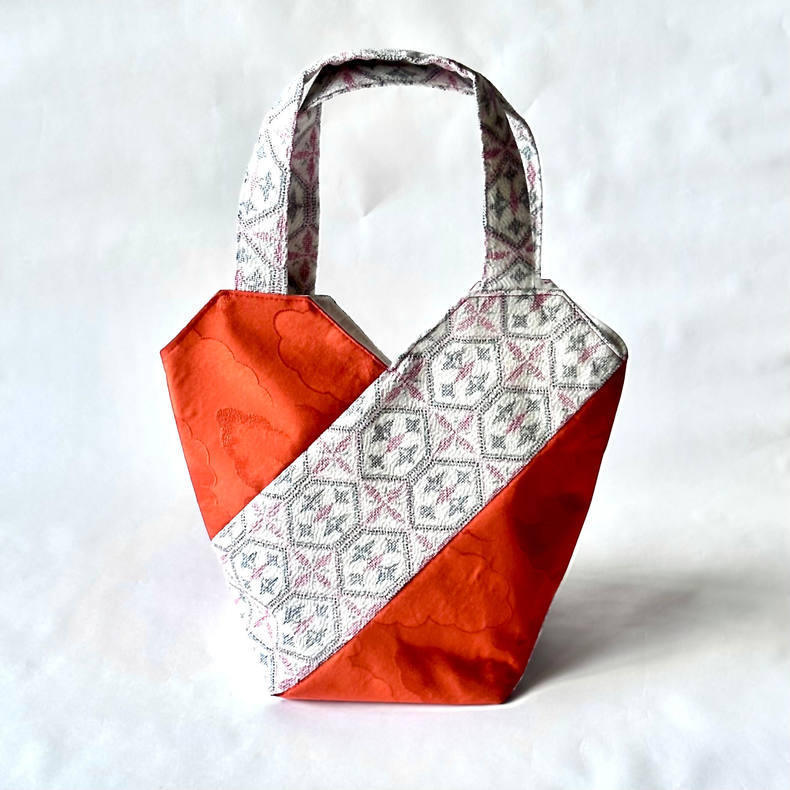 マチたっぷり 小ぶりな着物リメイクバッグ オレンジ